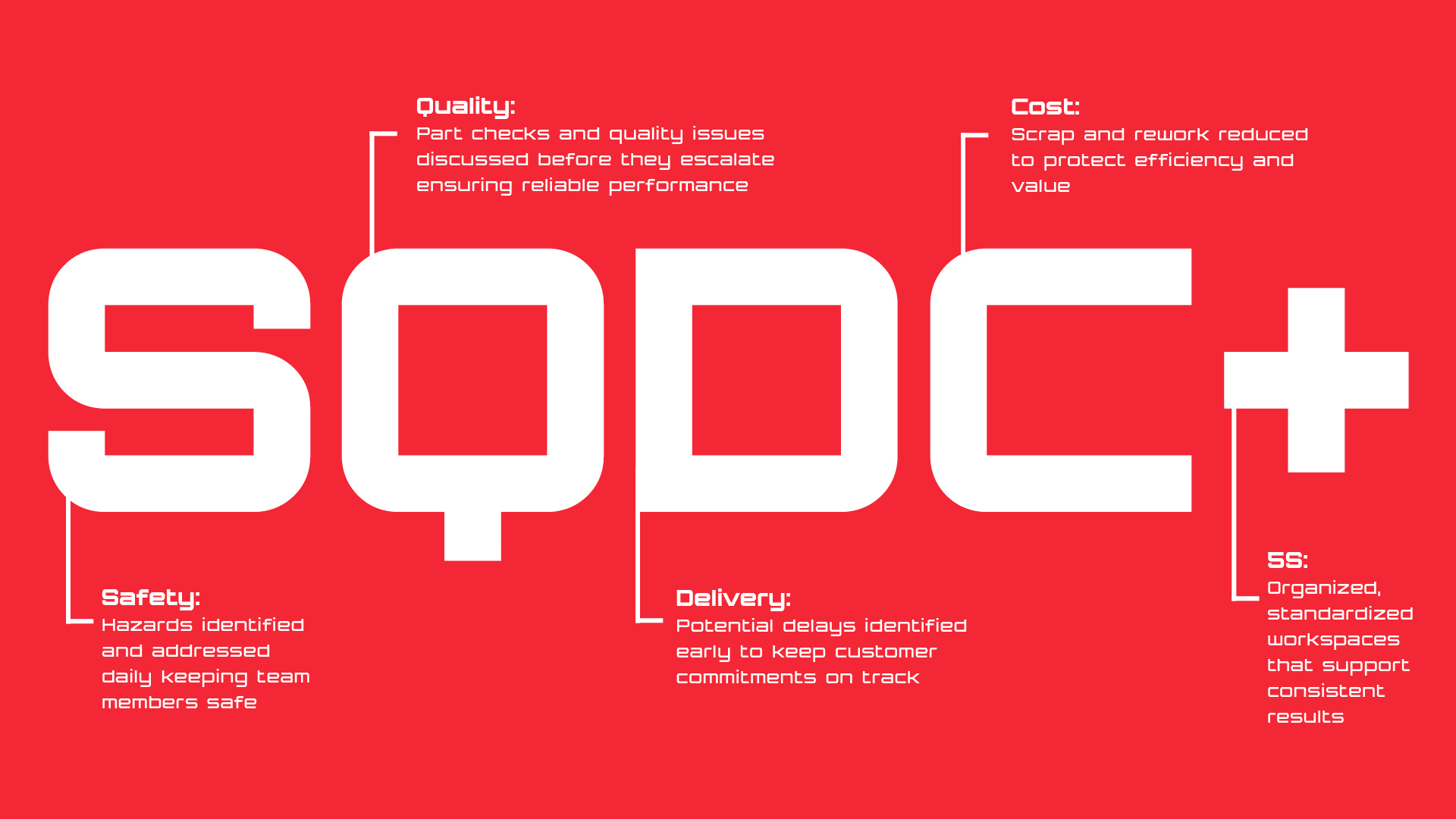 In today’s manufacturing environment, operational excellence depends on far more than advanced equipment and floor layout. While technology plays a critical role, true performance is driven by disciplined processes, structured problem-solving, clear communication and accountability at every level of the organization. For us here at Dane Manufacturing, strengthening these fundamentals has become a strategic priority. One methodology that has proven highly effective in supporting this effort is SQDC+ (Safety, Quality, Delivery, Cost and 5S). The implementation of SQDC+ across the shop floor is already delivering measurable improvements in productivity, quality and employee engagement. More importantly, it is helping establish a consistent way of thinking and working that supports continuous improvement and long-term operational excellence.